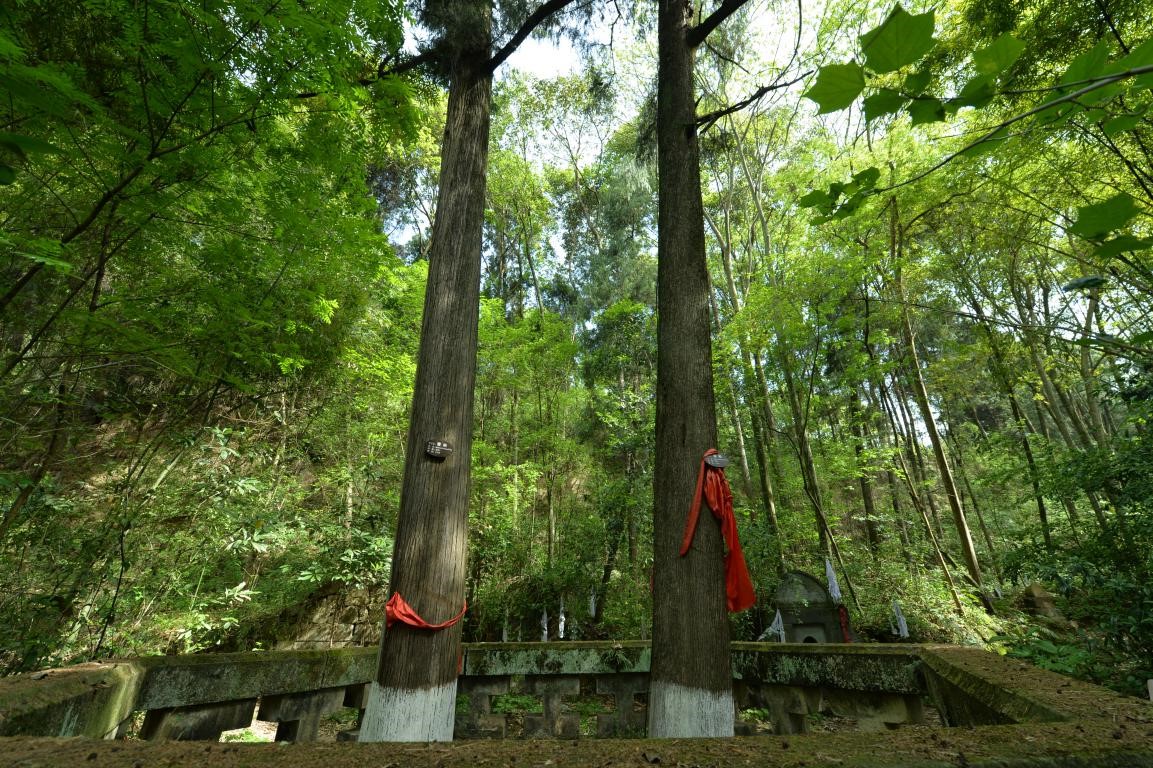 雙柏樹位于儀隴縣馬鞍鎮(zhèn)朱德故居?xùn)|側(cè),兩株,合圍粗,人們稱它“雙柏樹”。樹圍約兩米,高約20多米,枝葉繁茂,古樸蒼勁,似巨人筆直地矗立在那里。朱德同志青少年時(shí)常在這兩株柏樹間橫綁一根木棒,在上面練習(xí)翻單杠,以此強(qiáng)身健體。