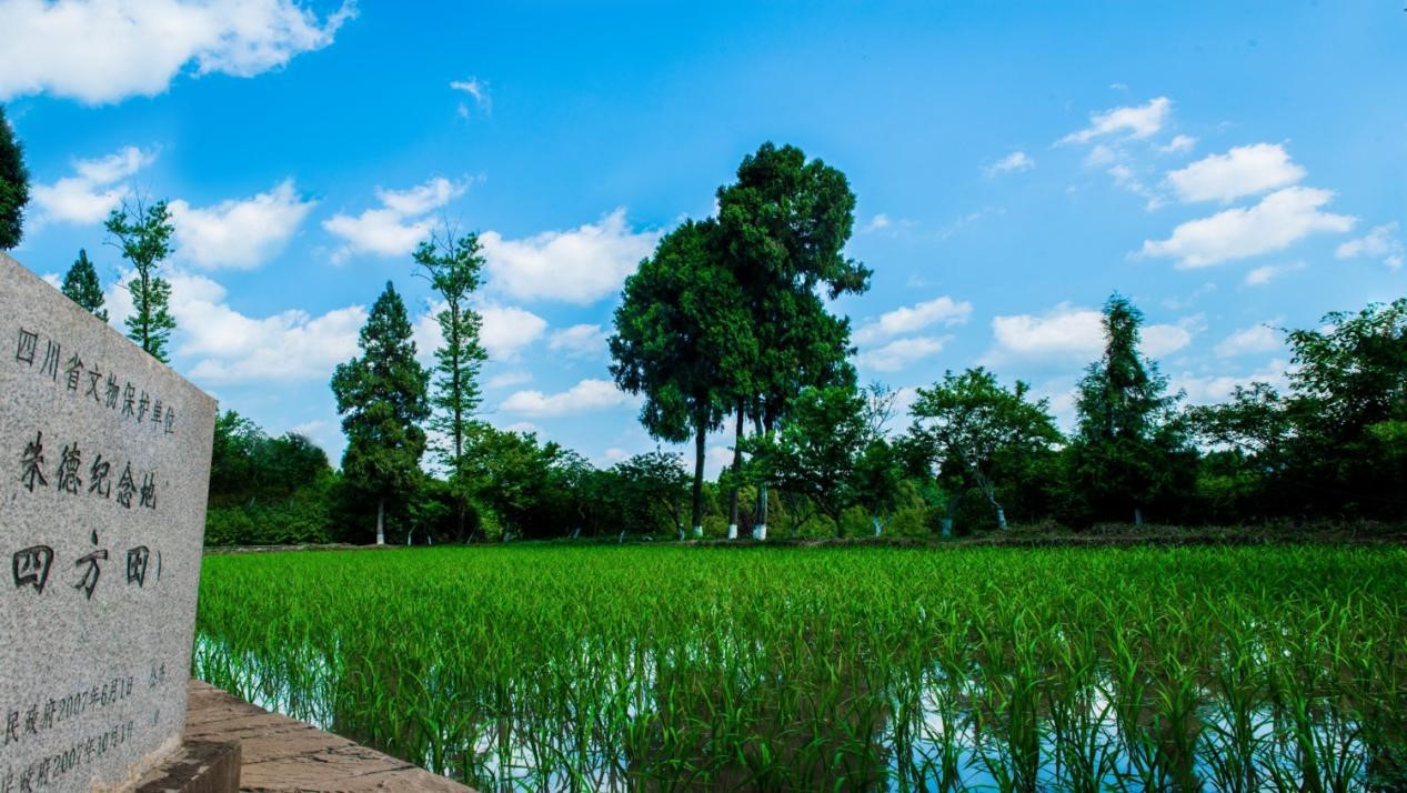 四方田位于儀隴縣馬鞍鎮(zhèn)朱德故居正前方,是朱德家唯一的祖業(yè)田,長(zhǎng)約40米,寬約30米,形似方形,人們便稱之為“四方田”。朱德少年時(shí)常在這田里勞作、養(yǎng)魚。