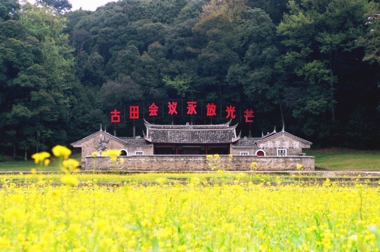 紅四軍司令部舊址—中興堂,位于古田鎮八甲村,建于清代嘉慶十年(1805年)。1929年12月中旬,毛澤東、朱德、陳毅等人率領紅四軍進駐古田,紅四軍司令部設在中興堂,朱德同志住在后廳右廂房。2006年5月,中興堂被列為全國重點文物保護單位。
