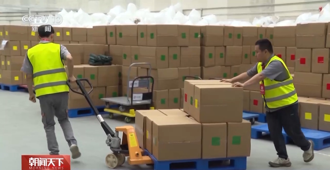 總臺記者 王勝東:在觀禮人員服務包的存儲倉庫,這些服務包已經被裝載完畢,靜待發車。先來了解一下服務包的外部設計特點和使用功能。它上面有一個小口袋,可以裝風油精和紙巾,下面還有一個小口袋,可以裝背包袋,旁邊的網兜,可以裝水瓶或者水壺。它能夠基本滿足廣場上觀禮群眾當天的保障需求,而這三個小口袋就構成了“80”字樣,契合今年抗戰勝利80周年的主題。服務包一共劃分為三個顏色,分別是城墻紅、豐饒金和橄欖綠,它們與廣場上座椅的顏色是一一對應的,也就是說您在廣場上處于不同的觀禮位置,就會得到不同顏色的服務包。