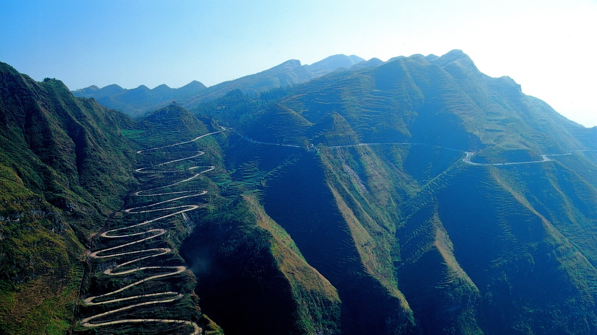 在貴州省黔西南布依族苗族自治州晴隆縣南郊,山巒疊翠,一條公路順山勢修建,有24處連續彎道,如白龍盤踞。這條公路就是被譽為“抗戰生命線”的二十四道拐。抗戰期間,無數軍車經此將戰略物資源源不斷地運往前線,為抗日戰爭的勝利作出了重要貢獻。